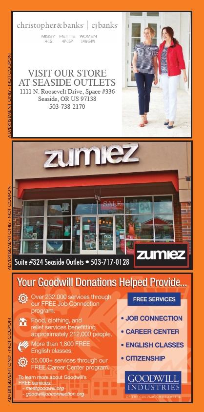 VISIT OUR STORE AT SEASIDE OUTLETS 1111 N. Roosevelt Drive, Space #336 Seaside, OR US 97138 503-738-2170 ADVERTISEMENT ONLY - NOT COUPON Suite #324 Seaside Outlets • 503-717-0128 ADVERTISEMENT ONLY - NOT COUPON ADVERTISEMENT ONLY - NOT COUPON
